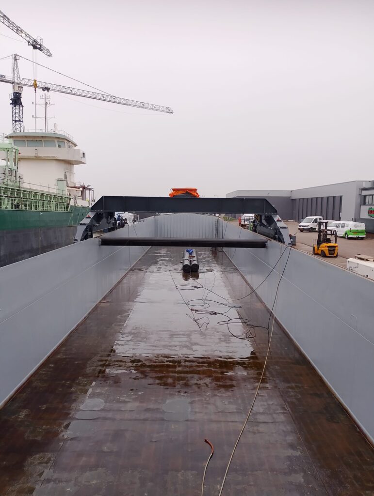 Het project brengt de nodige technische uitdagingen met zich mee — van de korte levertijd tot de omvang van de onderwagen en de bewegingen van het schip waarmee we rekening moeten houden.