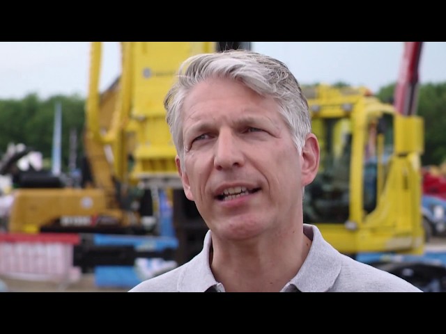 Rienk Nadema, commercieel manager bij Van den Heuvel, geeft uitleg over de nieuwe Sennebogen 653E.
